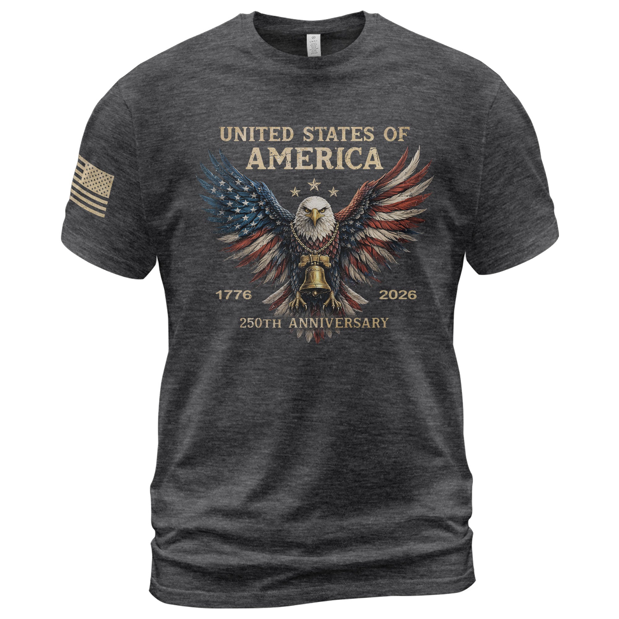 Freedom in flight. United spirit.Winged eagle paired with the American flag represents courage, unity, and independence. A striking patriotic shirt designed to celebrate America’s 250-year legacy.