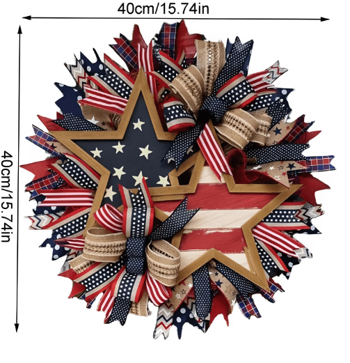 Each wreath is individually handcrafted — no two are exactly the same. Quantities are limited by the care and attention put into every piece. With a generous diameter of 16 inches, our Stars and Stripes Wreath commands attention and makes a bold statement. Each element of the wreath is carefully handcrafted, featuring vibrant red, pristine white, and deep blue cloth elements, evoking the patriotic colors of the Flag. The wreath is made of highquality materials that ensure it will last for many years to come.