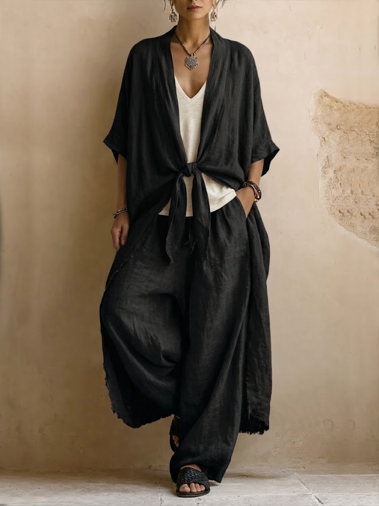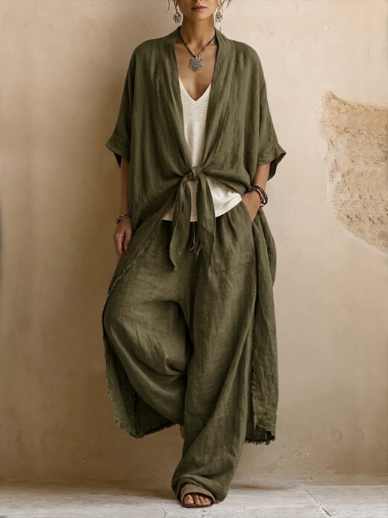 A lightweight cotton-linen set designed for slow days, warm sun, and easy style.